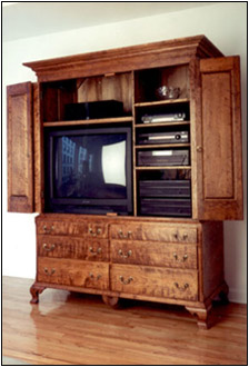 A whale of a cabinet, this press swallows a 36" television and a full complement of stereo components, not to mention the six drawers in the base.