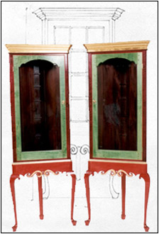 Matching Tiger Maple Corner Cupboards